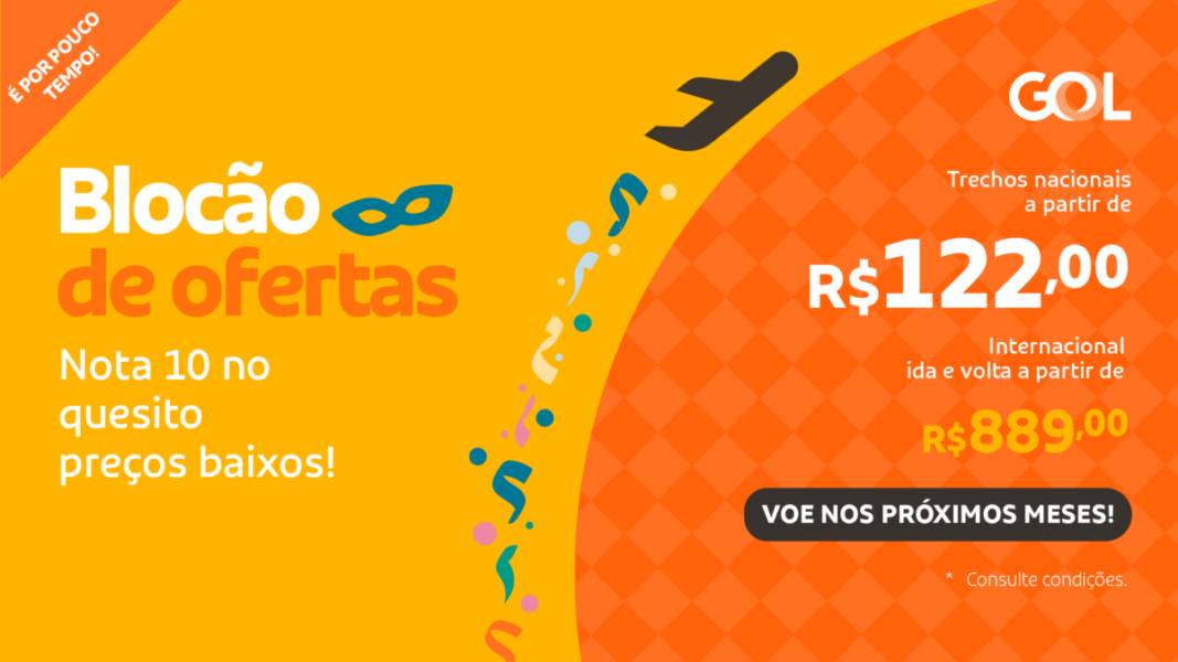 Home GeralBlocão de Ofertas GOL tem trechos nacionais a partir de R$122