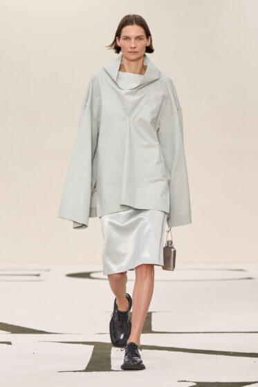 A Coleção explora a tensão entre a pureza e a expressividade, com recortes expressivos dando espaço para bordados e ornamentos, depois à organza selvagem e drapeados líquidos, e de volta à contenção equilibrada. A tatilidade define os tecidos, desde uma lã e cashmere densos e macios, passando por uma gabardine e sarja firmes e secas, até por um moleskin e algodão foscos e escovados, finalizando com uma faille e cetim brilhantes. A paleta urbana de Collection está enraizada nos tons neutros característicos da marca – preto, granito, cinza, fudge, off-white e porcelana – com toques inesperados de barolo, framboesa e um cítrico claro.