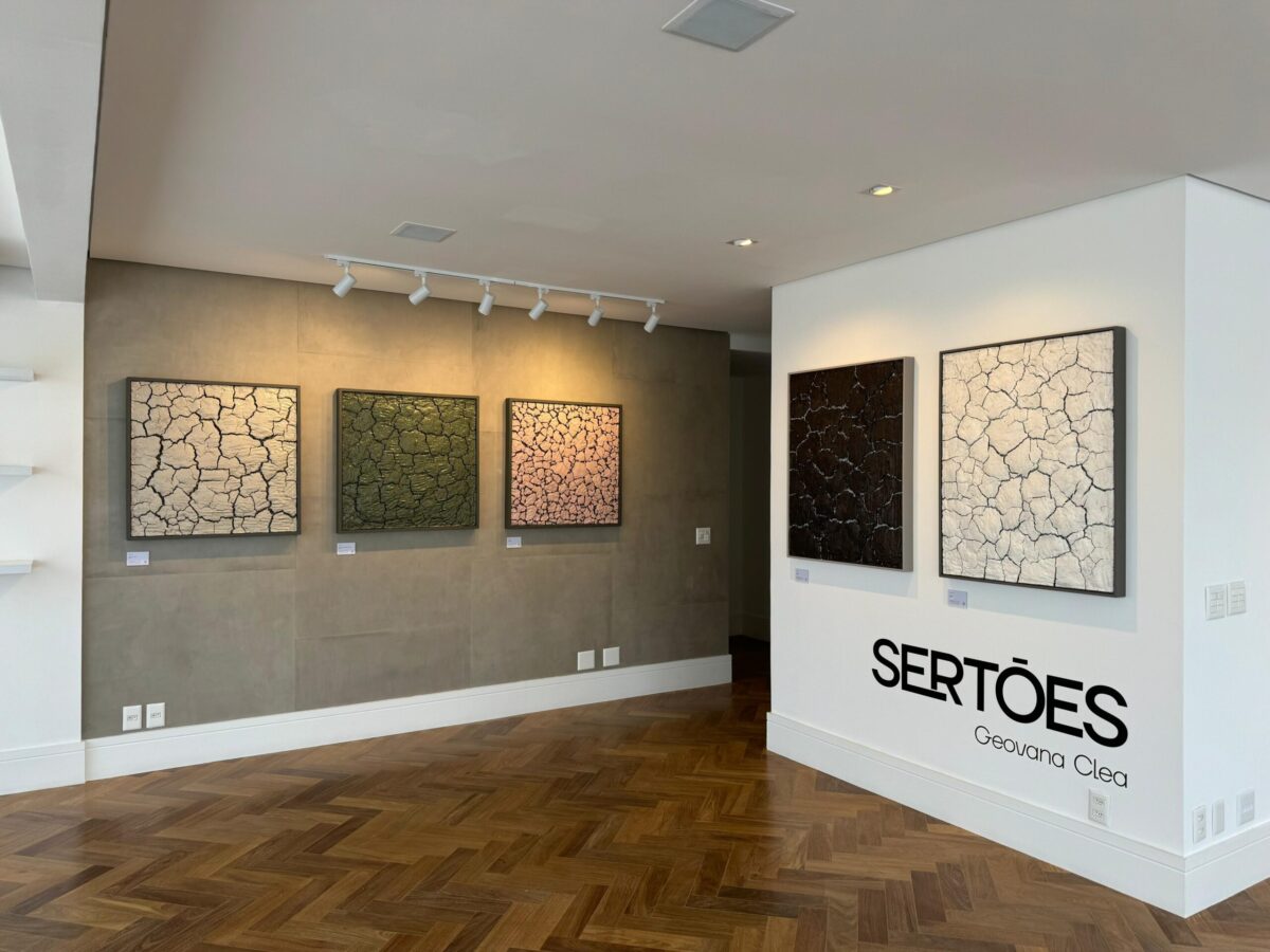 Na exposição Sertões, na G Gallery, Geovana Cléa apresenta um retrato visceral e poderoso da paisagem árida do sertão brasileiro. A artista, natural de Inhapi, Alagoas, utiliza a terra do sertão, inclusive terras sagradas dos povos indígenas, para criar uma obra que conecta o passado ancestral à arte contemporânea. Seu trabalho transcende fronteiras, unindo a dureza do chão rachado ao cosmopolitismo de sua carreira internacional. Cléa não apenas faz arte; ela dá voz à terra que sofre, grita e resiste.