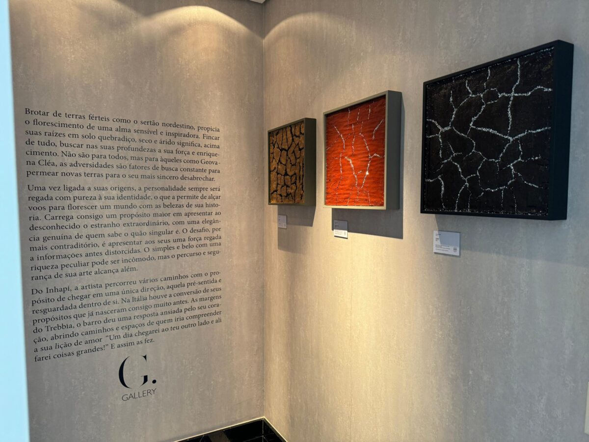 A mostra traz à tona uma crítica silenciosa, mas impactante, sobre o esquecimento e o descaso com o sertão e suas gentes. Geovana Cléa, reconhecida por sua trajetória na Itália e premiada em eventos internacionais como a Bienal de Veneza e o Salão de Belas Artes de Paris, coloca suas raízes no centro da criação. Ao recolher e trabalhar com a terra do sertão e dos indígenas Koiupanka, ela transcende a função estética, transformando a arte em um grito de resistência.