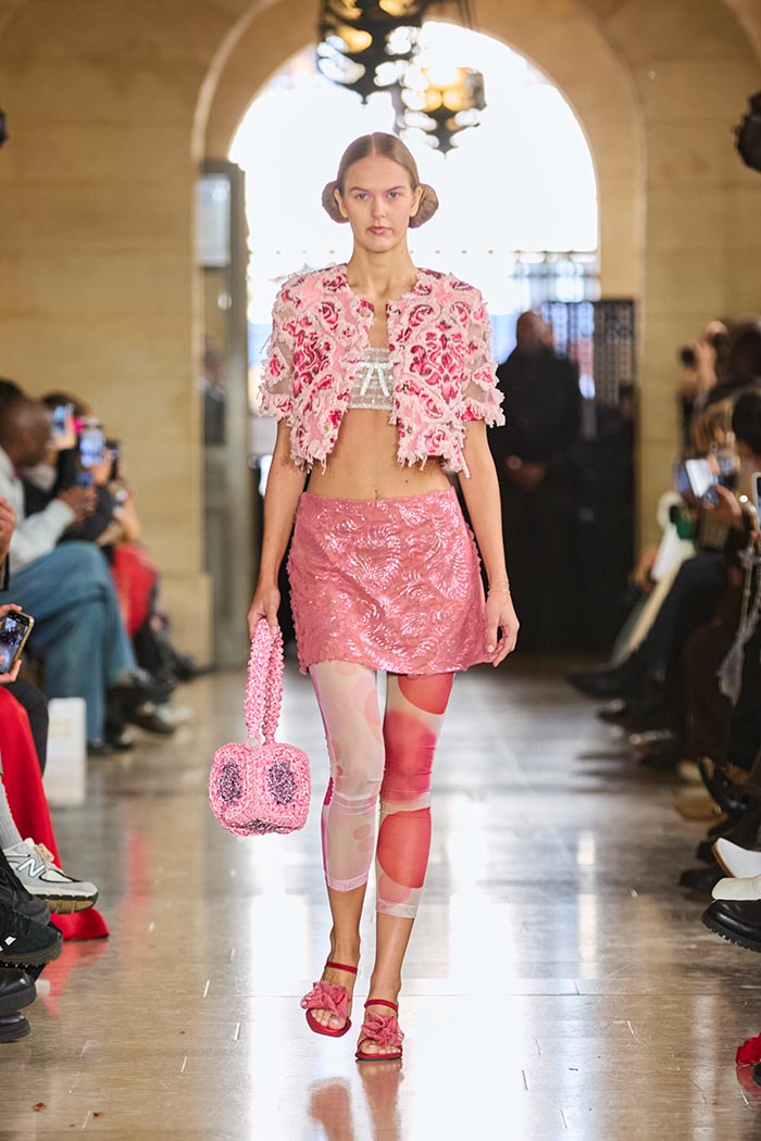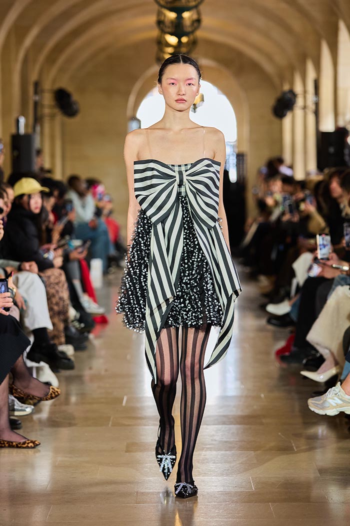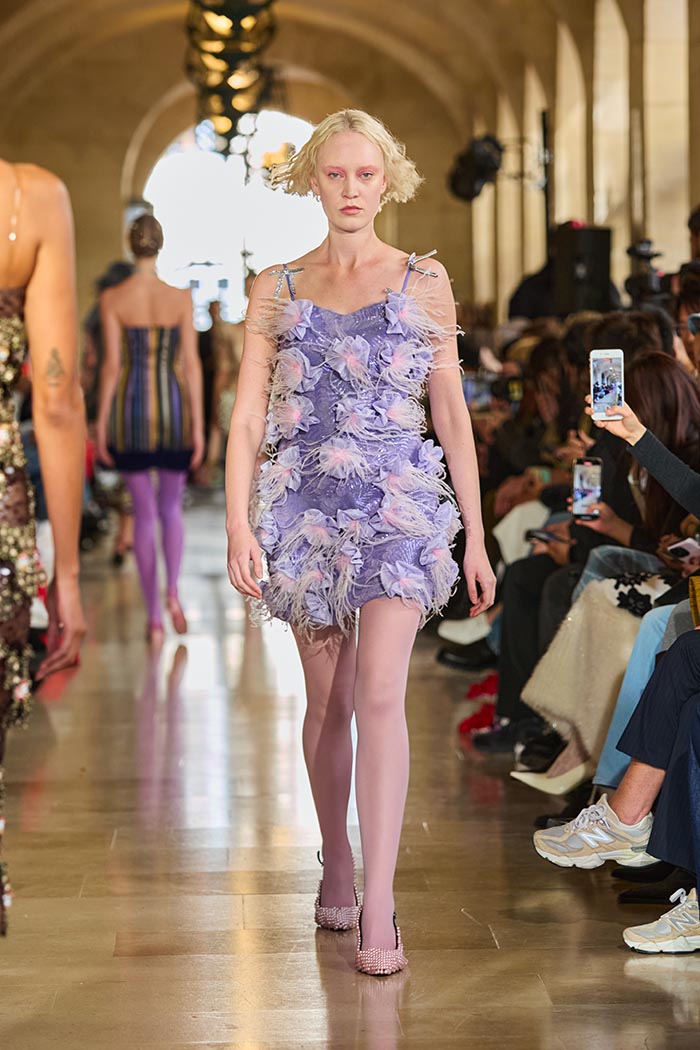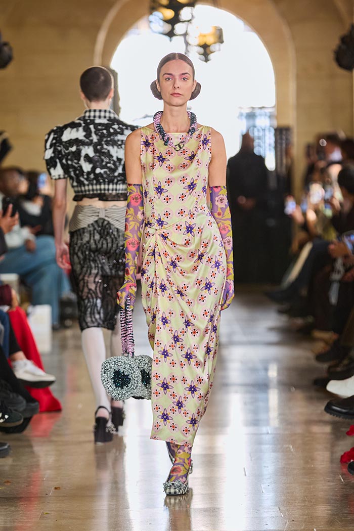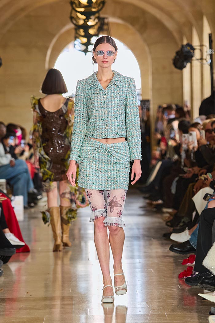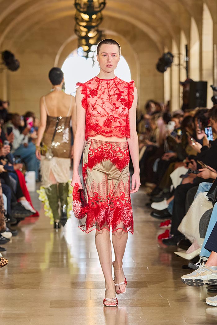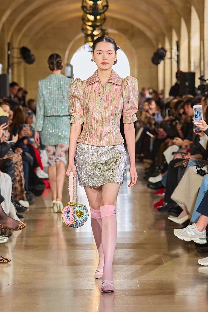 O desfile começou como uma viagem sensorial que transita entre o ritmo urbano e um sonho etéreo inspirado na dinastia Tang, período histórico de efervescência artística e refinamento estético na China. Entre tecidos de seda em tons de vermelho radiante, dourado translúcido e lilás glicínia, a coleção evocou lembranças de infância da estilista, reinterpretadas em uma linguagem moderna e emocional.
