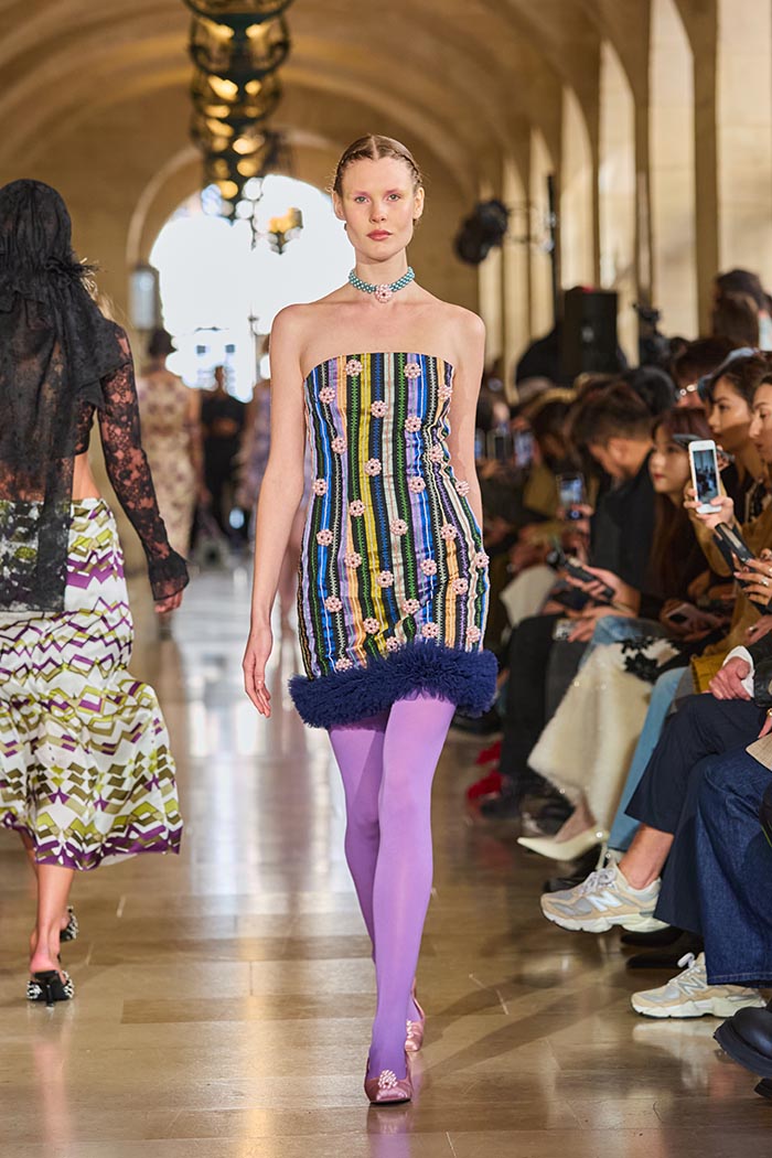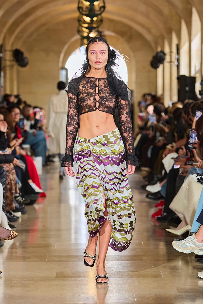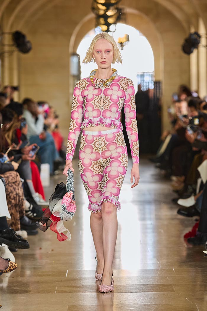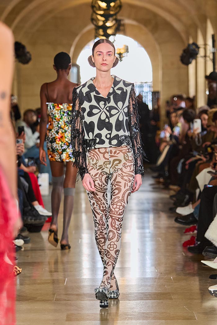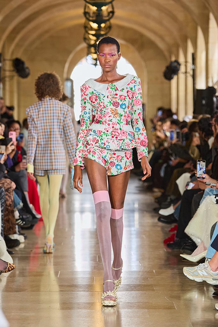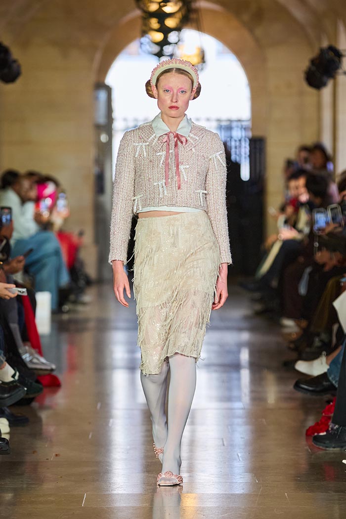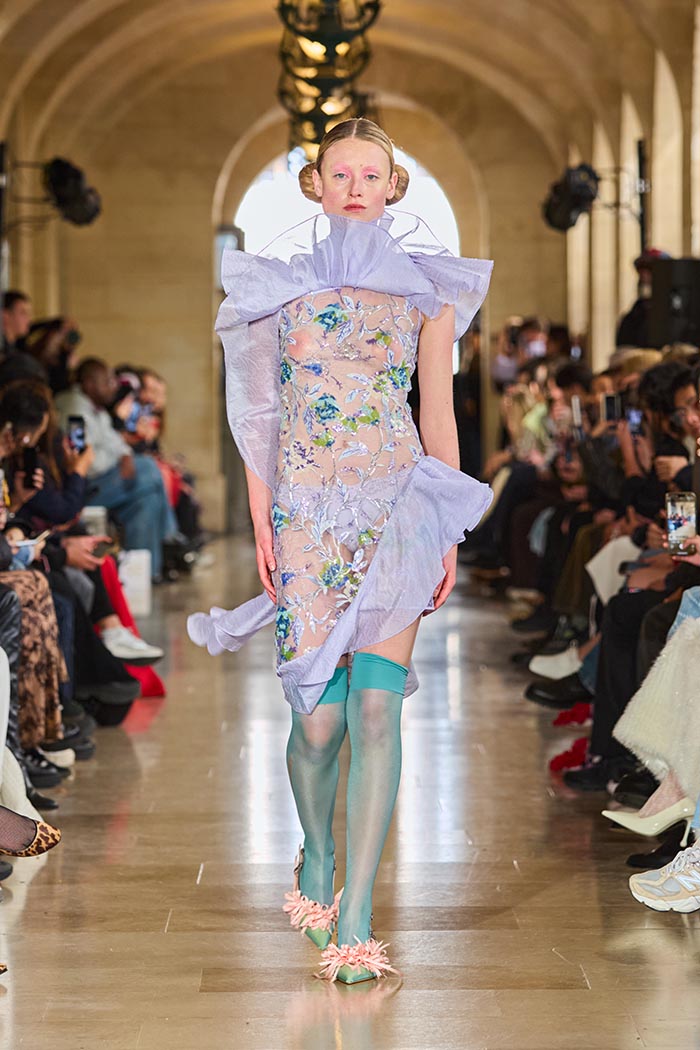 O desfile começou como uma viagem sensorial que transita entre o ritmo urbano e um sonho etéreo inspirado na dinastia Tang, período histórico de efervescência artística e refinamento estético na China. Entre tecidos de seda em tons de vermelho radiante, dourado translúcido e lilás glicínia, a coleção evocou lembranças de infância da estilista, reinterpretadas em uma linguagem moderna e emocional.
